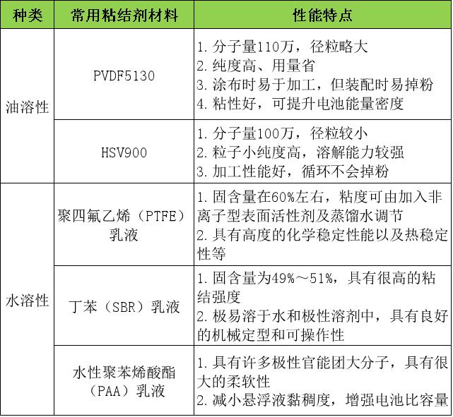 ③PVDF:最常用的正負(fù)極油性粘結(jié)劑